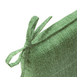 This set of two outdoor seat cushions features a distinguished, textured solid. Printed in shades of green, they easily coordinate with many patterns, colors and decor styles. A casual distressing adds artist-intended imperfections and character. Additional features of these outdoor seat cushions include rounded corners, 14" ties and recycled polyester fill with sewn seam closures. Also suitable for indoor use.