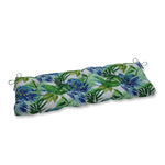 Get into a tropical state of style with this large outdoor bench cushion. Its fun, leafy print design is in bold watercolor shades of blue and green, and is set on an off-white slub ground. Fabric is fade resistant. Additional features of this large outdoor bench cushion include tufted detailing, 14" ties and recycled polyester fiber fill with a sewn seam closure. Also suitable for indoor use.