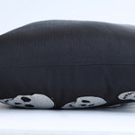 Just because this Halloween throw pillow is spooky, doesn't mean it can't be glitzy and stylish too. Lurex silver skulls shimmer against the black ground creating a striking and irresistible contrast. The handsome design is knitted on both pillow sides adding undeniable value. Additional features include a knife edge seam for a clean finish and a recycled polyester fiber fill insert with a zippered closure.