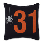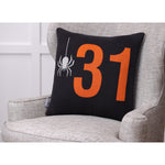 Halloween knocks every year on October 31st. Be ready to greet with this festive throw pillow. Shimmering beside the bold orange 31, a Lurex silver spider repeals down and pops against the black ground creating a delightful and irresistible contrast. Doubling the haunting of the season, the eye-catching design is knitted on both pillow sides adding undeniable value. Additional features include a knife edge seam for a clean finish and a recycled polyester fiber fill insert with a zippered closure.