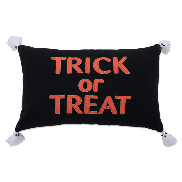 ndoor Decorative Halloween Throw Pillow in Trick or Treat Ghost Black, 12"x20", Complete Pillow with Tassels & Zipper Closure.