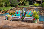 Bringing a classic resort look to your outdoor area, this awning stripe is the perfect combination of a traditional stripe in modern colors. The incredibly rich colors of bright coral and turquoise tones are mixed with a hint of green creating an eye-catching appeal. Add this outdoor stripe to create a refreshing backdrop for enjoying the outdoors. Additional features of this set of two outdoor throw pillows include self welt cords for a beautiful finish and recycled polyester fiber fill with sewn seam closures. Also suitable for indoor use.