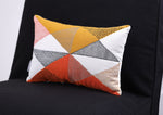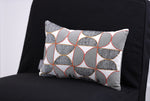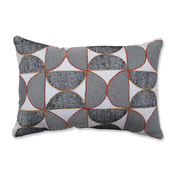 Set the stage for family gatherings with the eye-catching style of this lumbar pillow. Its magnificent geometric pattern, set on off-white cotton pique cloth, is covered with appliqued and embroidered half circles that are outlined with orange and gold. Additional features include a knife edge seam for a clean finish, a coordinating solid gray back and recycled polyester fiber fill with a sewn seam closure.