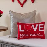 Boldly express your love any time of the year to celebrate family, romance, or friendships. Featuring appliqued & embroidered detailing, this lumbar pillow's dramatic sentiment is notated on a crisp red ground. Take notice of the bright pink heart embroidered in boucle yarn that cleverly replaces the letter "O" and provides eye-catching dimension. Additional features of this lumbar pillow cover include a coordinating white welt cord in for a clean finish and a zipper closure. The 12" x 19" lumbar pillow insert is sold separately.