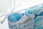 You won't need bait for these fish! Whether you own fish, enjoy looking at fish, or simply enjoy fishing, you'll love the fun abstract aquatic friends on Hooked Seaside Blue. Perfect for a beach house, lake house, or poolside, this print features abstract watercolor fish in turquoise, aqua, and navy blue with tan accents on a white ground. Hooked Seaside Blue was created to be paired with a number of other Pillow Perfect patterns and solids and is available in a variety of pillow/cushion shapes and sizes.