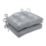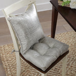 This set of two tufted chair pads makes a brilliant accent for any seating area. With glamour, they wow with an impressive metallic texture that picks up the light and glistens in splendor. The silver metallic color easily complements any decor. Additional features include 14-inch ties to secure the cushions to your furniture and recycled polyester fiber fill with sewn seam closures.