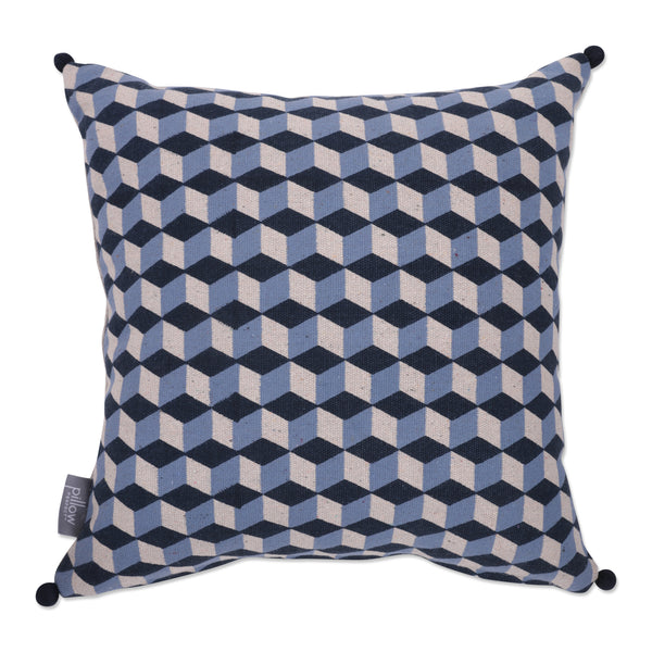 An abstract block print like the Pillow Perfect Throw Pillow, Totally Cubular in Navy Blue is a great way to add a modern touch to your favorite living space. Featuring stacked cubes in cool shades of blue, this pillow also has a fun fabric-covered bauble in dark blue at each corner. Enjoy this eye-catching print on your living room sofa, armchair, or entry bench. The plush recycled polyester fill insert will maintain the pillow's shape for years to come. Spot clean or hand wash only as needed./p>