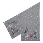 Get ready for the holidays with this wintery addition to your tablescape. Snow gently drifts onto two grazing deer nestled between a forest of trees. This 16x72-inch table runner is printed and embroidered to showcase the finite details in this winter wonderland scene.