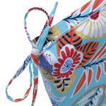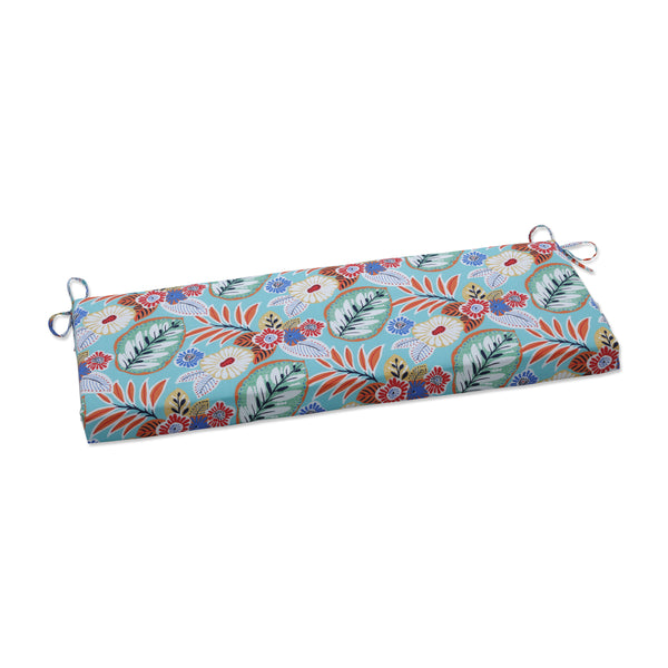 Lively and colorful, the updated floral pattern of this outdoor bench cushion is perfect for brightening up any backyard oasis. Abstract flowers and leaves in shades of orange, yellow, blue and green contrast nicely against the aqua ground. Additional features of this outdoor bench cushion include square corners, 14" ties and recycled polyester fill with a zippered closure for easy removal. Also suitable for indoor use.