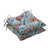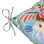 Lively and colorful, the updated floral pattern of this set of two outdoor tufted chair cushions is perfect for brightening up any backyard oasis. Abstract flowers and leaves in shades of orange, yellow, blue and green contrast nicely against the aqua ground. Additional features of these outdoor tufted chair cushions include 14" ties and recycled polyester fiber fill with sewn seam closures. Also suitable for indoor use.
