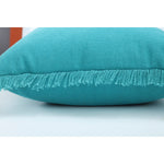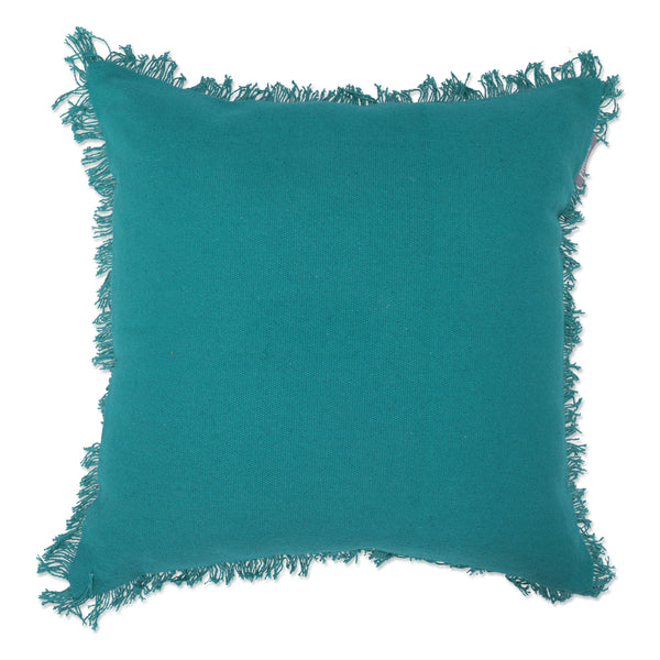Throw pillows in solid shades are a great way to change up the look of your living room, bedroom, or entry. The Pillow Perfect Throw Pillow in Fancy Fringe Turquoise is simple, and perfect for matching with prints and other solids for endless design combinations. Made from bright turquoise cotton dhurrie, the pillow's texture creates interest and depth on your sofa or chaise lounge, and the delicate fringe around the edges adds a little bit of fun. The plush recycled polyester fill insert will maintain the pillow's shape for years to come. Spot clean or hand wash only as needed.