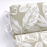 Oversized white leaves tell a monochromatic story on a natural ground with this outdoor chair cushion. The pattern is printed on outdoor fade-resistant polyester fabric that has a slub texture for added dimension. Additional features of this outdoor chair cushion include round corners, 14-inch ties and recycled polyester fill with a sewn seam closure.