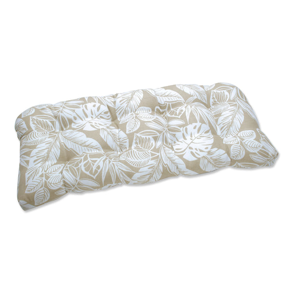 Oversized white leaves tell a monochromatic story on a natural ground with this outdoor tufted loveseat cushion. The pattern is printed on outdoor fade-resistant polyester fabric that has a slub texture for added dimension. Additional features of this outdoor tufted loveseat cushion include recycled polyester fiber fill and a sewn seam closure. Also suitable for indoor use.