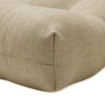 Bring neutral charm and a clean look to your porch or patio with this set of two large outdoor tufted chair pads. In sandy shades of taupe, their linen textured fabric coordinates easily with virtually any color of decor. Additional features of these large outdoor tufted chair pads include 14" ties to secure the cushions to your furniture and recycled polyester fiber fill with sewn seam closures. Also suitable for indoor use in kitchen and dining areas.