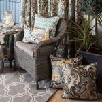 Popular paisley delivers elegance in the detailed pattern of this outdoor floor pillow. Set on a natural ground and ideal for a relaxed feel, its design is in soothing tones of blue, brown and yellow. Additional features of this outdoor floor pillow include a self welt cord for a clean finish and recycled polyester fiber fill with a sewn seam closure. Also suitable for indoor use.