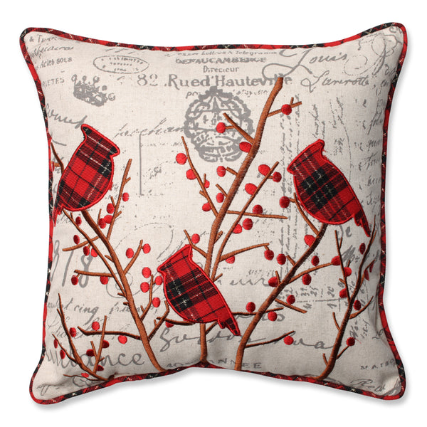 This beige and gray plush throw pillow features French wording and crown motifs. The front of this exquisite Christmas pillow is further complemented with embroidered branches, berries, and tartan plaid cardinal accents. Additional features of this throw pillow include a coordinating tartan plaid welt cord for a beautiful finish and recycled polyester fiber fill with a sewn seam closure. - Perfect all winter long.