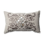 Glimmering neutrals bring this lumbar pillow to life in shades of tea-stained taupe and glittering shell accents. Delicate coffee brown embroidery picks out intricate scrollwork patterns and blooming flowers along the corners of this traditional rectangular pillow, while its center is absolutely full of shimmering iridescent capiz shell beads laid out like tile. This unique handmade lumbar pillow will bring elegant style to your decor year-round. Additional features include a knife edge seam for a clean finish, feather & down insert and a zipper closure.