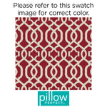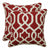 The highly attractive design of this set of two outdoor throw pillows grips your attention with elegance. On a deep shade of red, the interlocking white geometric pattern contrasts beautifully. Their durable fabric is fade-resistant. Additional features of these outdoor throw pillows include self welt cords for a clean finish and recycled polyester fiber fill with sewn seam closures. Also suitable for indoor use.