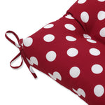 Riveting and timeless, the polka dot pattern of this outdoor bench cushion adds an exciting touch of elegance and playful energy to any outdoor area. In classic red and white polka dots, its fabric is fade resistant. Additional features of this outdoor bench cushion include tufted detailing, 14" ties and recycled polyester fiber fill with a sewn seam closure. Also suitable for indoor use.