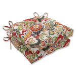 Bring elegant Jacobean style to your patio with this set of two outdoor tufted chair pads. Their floral print pattern in shades of red, orange, green and dark gray is set on an off-white ground. Fabric is textured and fade resistant. Additional features of these outdoor tufted chair pads include 14" ties to secure the cushions to your furniture and recycled polyester fiber fill with sewn seam closures. Also suitable for indoor use in kitchen and dining areas.
