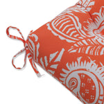 Festively elegant and bright, this outdoor bench cushion makes the perfect accent for bringing life to your patio or porch. Crisp paisley patterns in off-white are set against an attractive shade of orange on fade-resistant fabric. Includes tufted detailing, 14 inch ties and recycled polyester fiber with a sewn seam closure. Suitable for indoor use.
