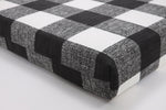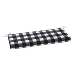 This classic buffalo check is a modern farmhouse essential for any outdoor area. Printed on a textured ground, this large-scale check is colored in striking tones of black and white. It is the perfect addition for lounging in the sunshine and will give a fresh update to your home. Additional features of this outdoor bench cushion include 14" ties, squared corners and recycled polyester fill with a zippered closure.