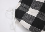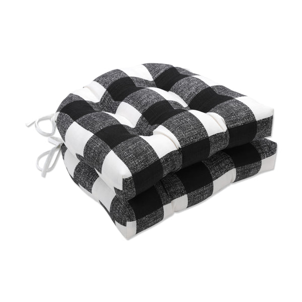 The classic buffalo check of this set of two outdoor oversized tufted chair pads is a modern farmhouse must for a fresh look in any outdoor area. Printed on a textured ground, this large-scale check is in striking tones of black and white. Additional features include 14" ties and recycled polyester fiber fill with sewn seam closures. Suitable for indoor use.