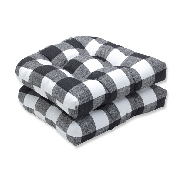 This classic buffalo check is a modern farmhouse essential for any outdoor area. Printed on a textured ground, this large-scale check is colored in striking tones of black and white. It is the perfect addition for lounging in the sunshine and will give a fresh update to your home. Additional features of this set of two outdoor tufted seat cushions include recycled polyester fiber fill and sewn seam closures.