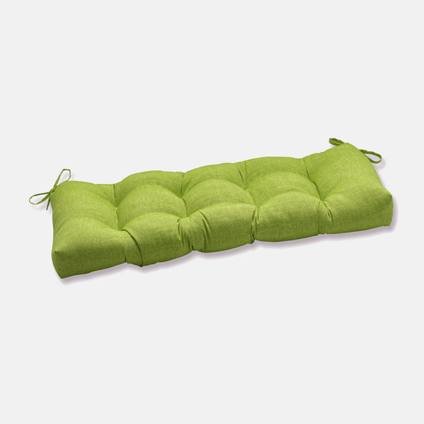 Energize the look of your porch or patio with the this outdoor bench cushion. In magnificent bright shades of green with a linen-like texture, the fabric is durable and fade resistant. Features of this outdoor bench cushion include tufted detailing, 14" ties and recycled polyester fiber fill with a sewn seam closure. Also suitable for indoor use.