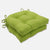 Energize the look of your porch or patio with this set of two outdoor oversized tufted chair pads. In magnificent bright shades of green with a linen-like texture, their fabric is durable and fade resistant. Additional features include 14" ties and recycled polyester fiber fill with sewn seam closures. Also suitable for indoor use in kitchen and dining areas.