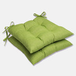 Double your outdoor fun with this set of two indoor/outdoor tufted chair cushions. This lime green 100% polyester fabric has subtle texture and is weather- and fade-resistant. Easily match this bright pair of cushions with any number of throw pillows for a stylish, new look. Additional features of these outdoor tufted chair cushions include 14" ties to secure the cushions to your furniture and recycled polyester fiber fill with sewn seam closures. Also suitable for indoor use.