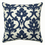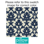 Trendy navy blue adds a modern twist to the classic and sophisticated damask pattern of this outdoor floor pillow. Durable fabric and brilliant, fade-resistant colors make this pillow equally at home on indoor or outdoor furniture. Additional features of this outdoor floor pillow include a self welt cord for a clean finish and recycled polyester fiber fill with a sewn seam closure.