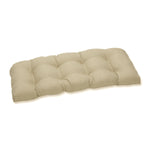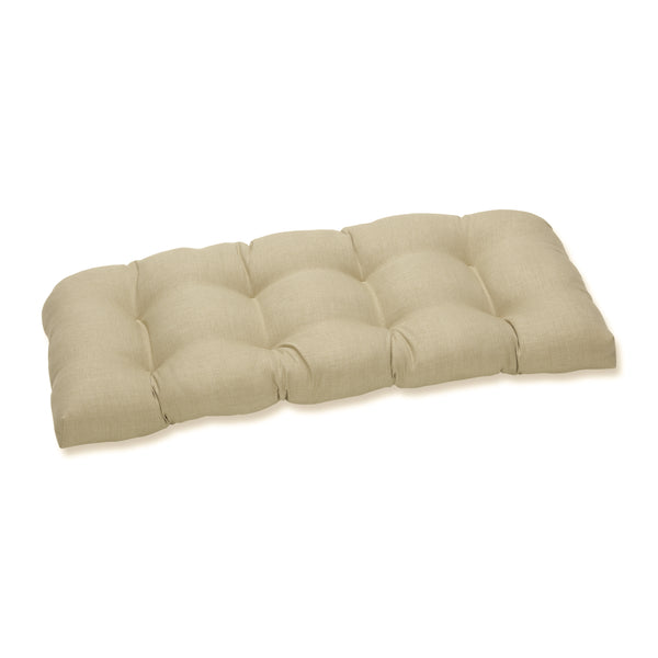 Bring neutral charm and a clean look to your porch or patio with this outdoor tufted loveseat cushion. In sandy shades of taupe, its linen textured fabric coordinates easily with virtually any color of decor. Additional features of this outdoor tufted loveseat cushion include recycled polyester fiber fill and a sewn seam closure. Also suitable for indoor use.