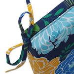 This outdoor bench cushion features a large-scale floral printed in bright shades of blue, yellow and green. It will make a striking statement in any outdoor space. Additional features of this outdoor bench cushion include square corners, 14" ties and recycled polyester fill with a zippered closure for easy removal. Also suitable for indoor use.
