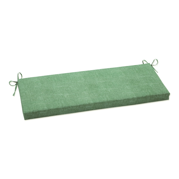 This outdoor bench cushion features a distinguished, textured solid. Printed in shades of green, it easily coordinates with many patterns, colors and decor styles. A casual distressing adds artist-intended imperfections and character. Additional features of this outdoor bench cushion include square corners, 14" ties and recycled polyester fill with a zippered closure for easy removal. Also suitable for indoor use.