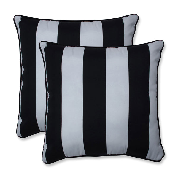 Dramatic and striking, this quintessential cabana stripe is a real stand out. The bold black & white coloration gives a mod vibe as it transforms a classic stipe to have a nostalgic touch coordinating with many patterns and colors. Transform your favorite outdoor space into a chic retreat. Additional features of this set of two outdoor decorative pillows include coordinating welt cords for a beautiful finish and recycled polyester fiber fill with sewn seam closures. Also suitable for indoor use.