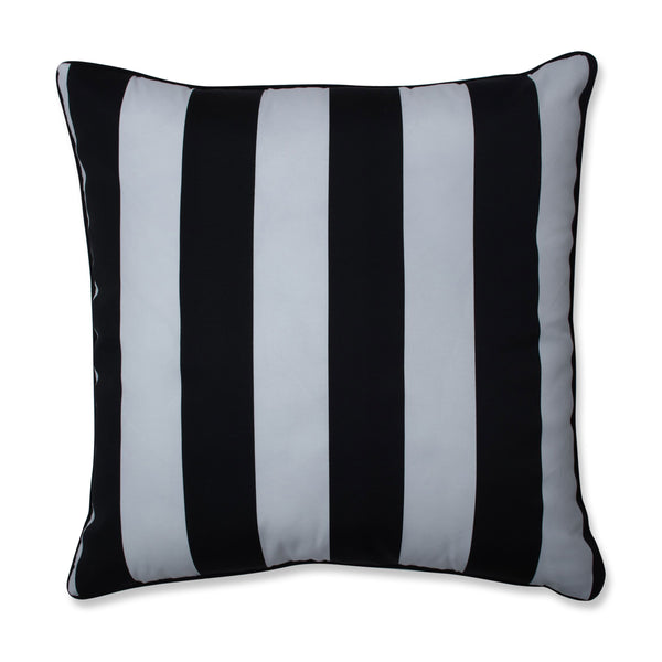 Dramatic and striking, this quintessential cabana stripe is a real stand out. The bold black & white coloration gives a mod vibe as it transforms a classic stipe to have a nostalgic touch coordinating with many patterns and colors. Transform your favorite outdoor space into a chic retreat. Additional features of this outdoor floor pillow include a coordinating welt cord for a beautiful finish and recycled polyester fiber fill with a sewn seam closure. Also suitable for indoor use.