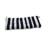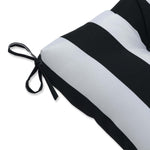 Dramatic and chic, the quintessential cabana stripe of this outdoor bench cushion is striking. Its bold black & white colors give a mod vibe, while the classic stipes add a nostalgic touch, which coordinates with many patterns and colors. Features tufted detailing, 14" ties, recycled polyester fiber fill and a sewn seam closure. Suitable for indoor use.