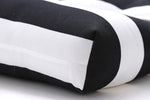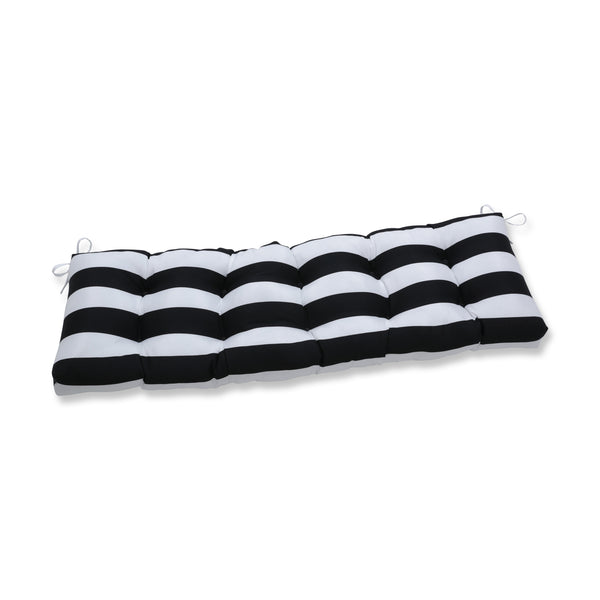 Dramatic and chic, the quintessential cabana stripe of this large outdoor bench cushion is striking. Its bold black & white colors give a mod vibe, while the classic stipes add a nostalgic touch, which coordinates with many patterns and colors. Features tufted detailing, 14" ties, recycled polyester fiber fill and a sewn seam closure. Suitable for indoor use.