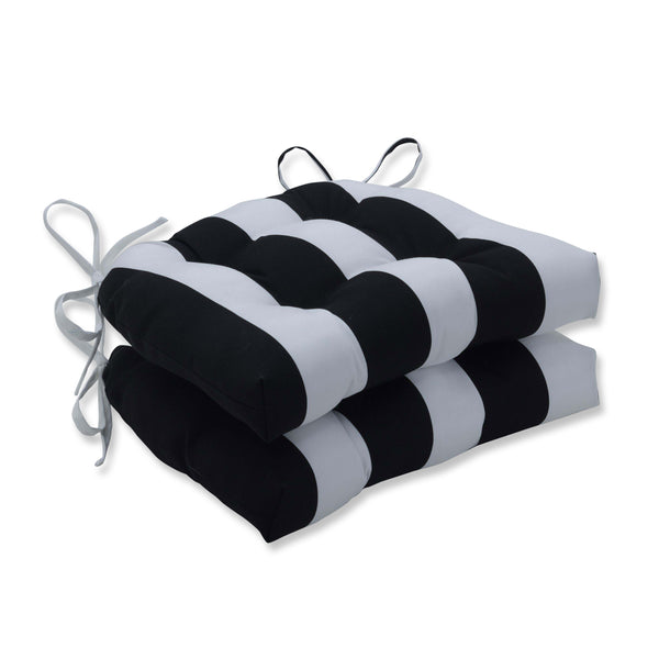 Cabana Stripe Black Outdoor Deluxe Tufted Chairpad (Set Of 2)