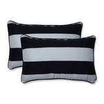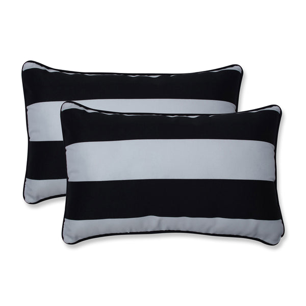 Dramatic and striking, this quintessential cabana stripe is a real stand out. The bold black & white coloration gives a mod vibe as it transforms a classic stipe to have a nostalgic touch coordinating with many patterns and colors. Transform your favorite outdoor space into a chic retreat. Additional features of this set of two outdoor lumbar pillows include coordinating welt cords for a beautiful finish and recycled polyester fiber fill with sewn seam closures. Also suitable for indoor use.