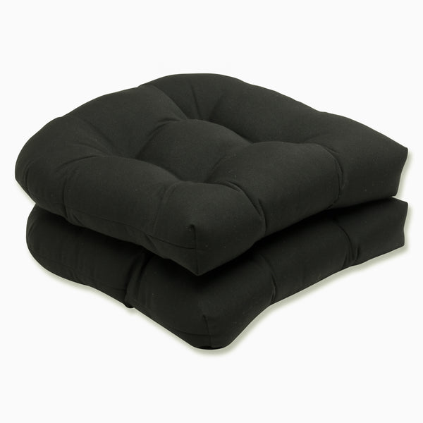 Accent the patio with the modern aura of this set of two Fortress outdoor tufted wicker chair cushions. In a sharp shade of black, they are made of performance fabric with built-in UV fade resistance, which protects them from the degrading effects of sunlight. Additional features of these outdoor tufted wicker chair cushions include recycled polyester fiber fill and sewn seam closures. Also suitable for indoor use.