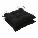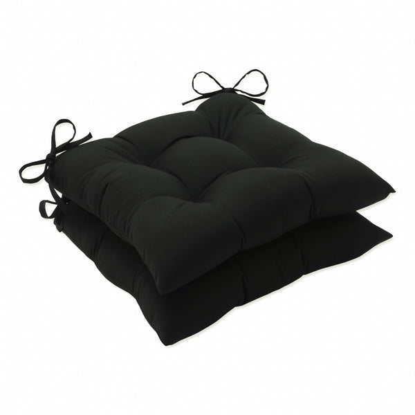 Accent the patio with the modern aura of this set of two Fortress outdoor tufted chair cushions. In a sharp shade of black, they are made of performance fabric with built-in UV fade resistance, which protects them from the degrading effects of sunlight. Additional features of these outdoor tufted chair cushions include 14-inch ties to secure the cushions to your furniture and recycled polyester fiber fill with sewn seam closures. Also suitable for indoor use.
