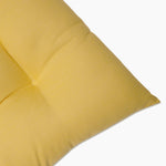 The sunny brilliance of this set of two Fortress outdoor tufted chair cushions brings brightness to any area. In a solid shade of yellow, this performance fabric with built-in UV fade resistance is protected from the degrading effects of sunlight. Additional features of these outdoor tufted chair cushions include 14-inch ties to secure the cushions to your furniture and recycled polyester fiber fill with sewn seam closures. Also suitable for indoor use.