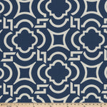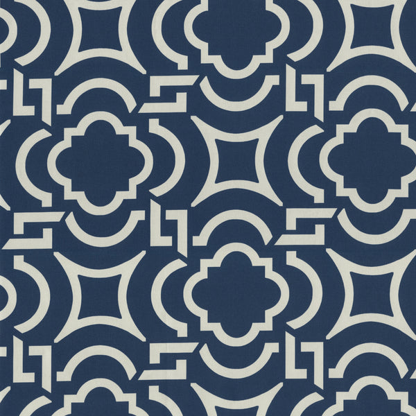 Enjoy this elegant trellis inspired design in a bold, classic shade of navy. Accented in crisp white this stark design brings to mind sea-side resorts, long days sailing and goes perfectly with white furniture.