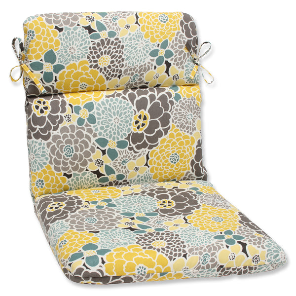 Brighten your porch or deck with the modern floral pattern of this outdoor chair cushion. Its flowers are in full bloom in shades of yellow, gray and teal with white outlined petals. Fabric is durable and fade resistant. Additional features of this outdoor chair cushion include rounded corners, 14" ties and recycled polyester fill with a sewn seam closure.