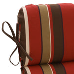 Modern stripes and elegant florals of this outdoor chair cushion make the reversible patterns memorable accents for any home or patio decor. Chic brown, tan and red add a contemporary twist to these patterns and bring a warm look. Additional features of this outdoor chair cushion include rounded corners, 14" ties and recycled polyester fill with a sewn seam closure.