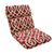 The highly attractive design of this outdoor chair cushion grips your attention with elegance. On a deep shade of red, the interlocking white geometric pattern contrasts beautifully. Its durable fabric is fade-resistant. Additional features of this outdoor chair cushion include rounded corners, 14" ties and recycled polyester fill with a sewn seam closure.