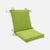 Bedeck your deck chair with the bright flavor of this lime green outdoor square corner chair cushion. Its 100% polyester fabric has a subtle texture and is both weather- and fade-resistant. This cushion is comfy and ready for you to sit back and enjoy a summer afternoon on your patio or porch. Throw pillows can easily be coordinated with this lime green cushion. Additional features of this outdoor chair cushion include square corners, 14" ties to secure the cushion to your furniture and recycled polyester fill with a sewn seam closure.