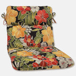 Say "Aloha" to the spirited flowers of Hawaii, which wonderfully blend together in the style of this outdoor round cornered chair cushion. Set against a black ground, green, red and maize coordinate beautifully to create a robust floral pattern. Additional features of this outdoor chair cushion include rounded corners, 14" ties to secure the cushion to your furniture and recycled polyester fill with a sewn seam closure.